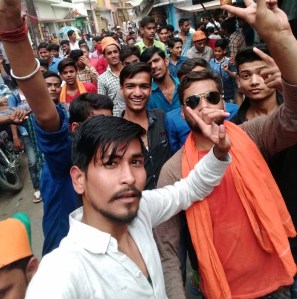 कोंच-उरई। नगर में रविवार को योगी आदित्यनाथ के उत्तर प्रदेश के सीएम के रूप में शपथ लेने पर यहां हिंदूवादी संगठनों में जोश है, उन्होंने जय श्रीराम के गगनभेदी नारों के साथ जुलूस निकाला। लवली चैराहे से चंदकुआ मार्कंडेयश्वर तिराहा होकर सागर चैकी, बजार होते हुये नयी बस्ती जरा वालों के यहां से लवली चैराहे पर समापन किया गया। जुलूस में सुशील दूरवार सुधीर सोनी रामराजा पटेल, आशुतोष रावत भईया गौ रक्षा दल, आकाश बुधौलिया, आनंद सोनी, अभिनव वाजपेई, दौलत यादव, कपिल रिछारिया, अंशू गुप्ता, प्रशांत हिंगवासिया, प्रखर हिंगवासिया, पंकज वर्मा मनीष चैहान, अमित व्यास, अनिरुद्ध खरे, अभिषेक खरे, ओमप्रकाश दुबे, विवेक अग्रवाल, विशाल बहरे, विवेक बहरे, राजीव अग्रवाल, मोहित लाक्षकार, वैभव अग्रवाल, सोनू अग्रवाल, चिराग उदैनिया, ऋषभ सक्सेना, आशुतोष शुक्ला, रोहन सोहाने, गौरव सौनकिया, नीर कुमार, अरुण कनकने, रवि कुमार, रजनीश कुमार, राज गुर्जर, अंबरीष सोनी, आनंद सोनी, सुमित व्यास, नीशू तिवारी, पुनीत तिवारी, शिवि यादव, अंशुमान तिवारी, छोटू सोनी, प्रदीप सोनी, सत्यम शुक्ला, रोहित सोनी, विमलेश राठौर, कमलेश राठौर, विनोद राठौर, गोलू राठौर सहित सैकड़ों युवा मौजूद रहे। उधर, नदीगांव में भी योगी आदित्यनाथ के यूपी के मुख्यमंत्री बनने पर भाजपाइयों ने नगर में मिठाईया बांटी व गोले दाग कर खुशी जहिर की। कस्बे में दिन भर जश्न का माहौल रहा। डॉ. रामकिशोर शर्मा, तेज प्रताप, माता जरोलिया, उमाकांत तिवारी, विकास पटैरया, शिशुपाल बुंदेला, रामू खरे, विनायक शुक्ला, बबलू सोनी, संतोष चैरसिया, शुभम मिश्रा, डॉ. विनय गुप्ता, रिंकू चंदेल, वीर प्रताप आदि मौजूद रहे, तमाम लोग शपथ ग्रहण में भी लखनऊ पहुंचे।