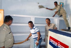 सरकार का फरमान बताया गया है कि हर शुक्रवार कोतवाली और थानों में मय स्टेशन इंचार्ज के सारा स्टाफ साफ सफाई करके मोदी के स्वच्छ भारत मिशन को आगे बढायेगा। इस फरमान का असर यह हुआ कि आज कोतवाल देवेन्द्र कुमार द्विवेदी ने इसकी शुरुआत कर दी है। सुरही चैकी इंचार्ज संजीव यादव, खेड़ा चैकी इंचार्ज जयवीर सिंह, मंडी चैकी इंचार्ज उदयपाल सिंह, सागर चैकी इंचार्ज घनश्याम यादव, कोतवाली के दरोगा विनोद कुमार त्रिपाठी के अलावा मुंशियाने और कोतवाली के सिपाही हाथों में झाड़ू लेकर साफ सफाई में जुट गये। उन्होंने न केवल कोतवाली के दफ्तर बल्कि पूरे परिसर को चकाचक कर दिया। इसके अलावा अभिलेखों की भी साफ सफाई की गई।
