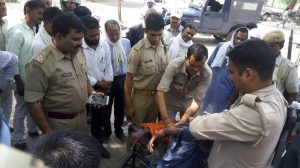 उरई। कलेक्ट्रेट में एक विकलांग पेड़ पर चढ़ कर फाँसी पर लटकने की धमकी देने लगा जिससे हड़कंप मच गया । किसी तरह से उसे पेड़ से नीचे उतारा गया । प्रारभिक ख़बरों के अनुसार उसकी मानसिक हालत ठीक नहीं है और वह नशा भी करता है ।