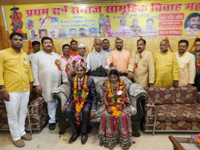 उरई। श्री मंशापूर्ण हनुमान समिति के तत्वावधान में सामूहिक आयोजन में 11 बेटियों के हाथ पीले कराये गये। वैवाहिक कार्यक्रम पूरे धूमधाम और वैदिक रीति-रिवाजों से सम्पन्न कराया गया। कई माननीयों ने इस अवसर पर उपस्थित होकर बेटियों और वरों को आशीर्वाद देकर जहां महती पुण्य कमाया वहीं आयोजकों का उत्साहवर्धन भी किया।