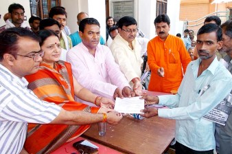 कोंच-उरई। भारत सरकार की अति महत्वाकांक्षी योजना स्वच्छ भारत अभियान के तहत खुले में शौचमुक्त भारत की परिकल्पना को साकार करने की दिशा में उन लोगों जिनके घरों में शौचालय नहीं हैं, को शौचालय निर्माण के लिये शहरी क्षेत्र में दिये जाने बाले आठ हजार रुपये के अनुदान में पहली किश्त चार हजार रुपये शनिवार को पात्रों को आवंटित कर दिये गये। अनुदान पाने की पात्रता की पहली शर्त यही है कि उसके घर में शौचालय नहीं हो। इलाकाई विधायक मूलचंद्र निरंजन ने इस अवसर पर लोगों से कहा कि प्रधान मंत्री के स्वच्छ भारत अभियान को तभी सफल बनाया जा सकता है जब आम जन की इसमें सक्रिय सहभागिता हो।