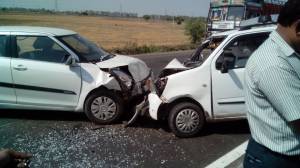 उरई। नेशनल हाईवे पर दो कारें आमने सामने टकरा गई। जिससे तीन लोग गम्भीर रूप से घायल हो गये। पुलिस ने घायलों को एम्बूलेन्स बुलवाकर जिला अस्पताल भिजवा दिया है। जबकि क्षतिग्रस्त कारों को थाने में खड़ा करा लिया गया है। नेशनल हाईवे पर एट के पास मरम्मत का काम चल रहा है जिसकी बजह से एक साईट से दोनों तरफ की गाडि़यां निकाली जा रही हैं। इसके चलते बिजली घर के पास आज दो कारें आमने सामने टकरा गईं। भीषण टक्कर में कारें बुरी तरह क्षतिग्रस्त हो गई और तीन लोग घायल हो गये।