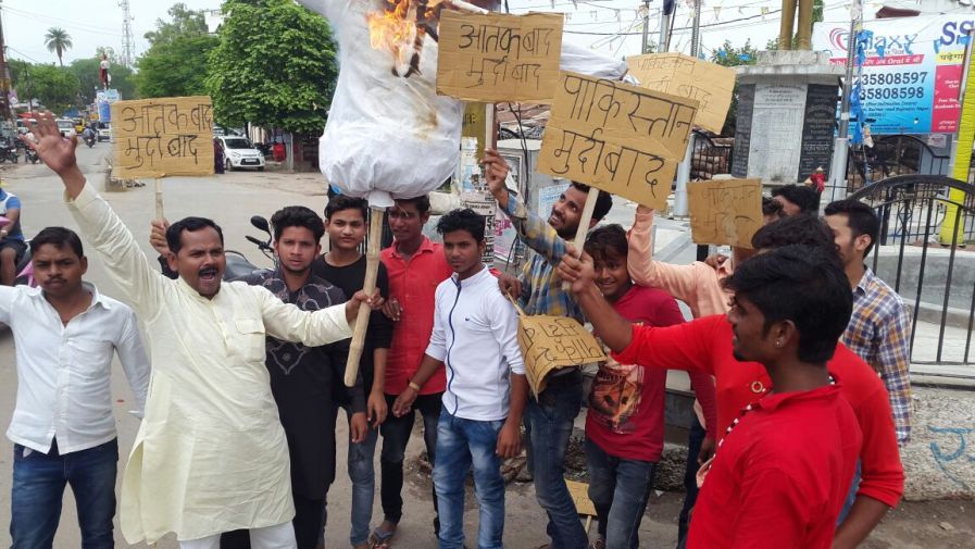 बुधवार को शिवपाल सिंह यादव फैंस एसोसिएशन के जिलाध्यक्ष महबूब मंसूरी के नेतृत्व में संगठन के कार्यकर्ता, पदाधिकारी शहर के राजमार्ग स्थित अंबेडकर चौराहे पर पहुंचे, जहां पर अमरनाथ यात्रा के दौरान भक्तों व सैनिकों पर किए गए जानलेवा हमले को लेकर पाक सरकार का पुतला फूंका, इसके साथ ही पाक सरकार के खिलाफ नारेबाजी की। कहा गया कि पाक अपनी नापाक हरकतों से बाज नहीं आ रहा है। यही वजह है कि आएदिन इस तरह की घटनाएं हो रहीं हैं, लेकिन केंद्र सरकार सब कुछ जानने के बाद भी अनजान बनी हुई है। मांग की गई है कि मृतकों के परिजनों को आर्थिक सहायता के रूप में 10-10 लाख रुपये और सैनिको ंके परिवारीजनों के एक एक सदस्य को नौकरी दिलाए जाने की मांग की गई। इस दौरान नगर अध्यक्ष मनोज सोनी, नगर महासचिव मोहम्मद शानू, सचिव श्याम जी, सानूू मंसूरी, आसिफ खान, चांद खां, राहुल सोनी, फैयाज भाई, निजाम निहारिया, योगेश सोनी, फरीद खान, सिक्के मंसूरी, बाबा सोनी, नारायन(छोटू), मनीष श्रीवास्तव आदि मौजूद रहे।