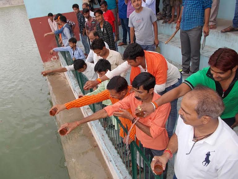 कोंच-उरई । गुजरी 10 जुलाई को यहां कोंच के ऐतिहासिक ‘सागर सरोवर में जिलाधिकारी के मुख्य आतिथ्य में जिस नौका विहार सेवा का आयोजन किया गया था और कार्यक्रम के दौरान सप्त नदियों के जल के साथ आब-ए-जमजम को सागर के जल में डाला गया था उसका बुधवार को विश्व हिंदू परिषद् और अन्य हिंदूवादी संगठनों ने विरोध करते हुये एक अलग से शुद्घीकरण कार्यक्रम आयोजित किया जिसमें नगर के सैकड़ों युवकों ने हिस्सा लिया। विद्वान ब्राह्मïण पं. ज्वालाप्रसाद दीक्षित द्वारा उच्चारित वेद मंत्रों के बीच पूजन अर्चन के बाद सागर में गंगाजल का छिडक़ाव किया गया। विहिप अध्यक्ष सुशील दूरवार का कहना है कि उक्त तालाब में हिंदुओं के आराध्य भगवान राम वनवास के दौरान सरयू पार करते हैं और पितर पक्ष में भी वहां अनुष्ठान होते हैं। यह तालाब लोगों की धार्मिक भावनाओं से जुड़ा है और हिंदुओं की आस्था का सवाल है, इस तालाब में आब-ए-जमजम डाल कर इसे अपवित्र किया गया था जिसे पुन: शुद्घ करके क्षमायाचना की गई है।