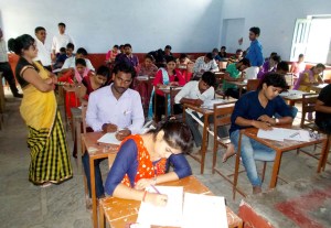 कोंच-उरई। सत्र 2016-18 बीएड प्रथम वर्ष की परीक्षा में आज 26 परीक्षार्थियों ने परीक्षा नहीं दी, जबकि एक परीक्षार्थी नकल करते पकड़ा गया जिसकी परीक्षा पुस्तिका पर नोट लगा दिया गया। स्थानीय मथुरा प्रसाद महाविद्यालय में नौ कॉलेजों का परीक्षा केन्द्र बनाया गया था जिसमें 407 के सापेक्ष कुल 381 ने ही परीक्षा दी। बीएड की बार्षिक परीक्षा के लिये कोंच के मथुरा प्रसाद महाविद्यालय में नौ कॉलेजों घनाराम हरीराम महाविद्यालय मिनौरा, रज्जनदेवी हेमंतकुमारी महाविद्यालय गोहन, स्व. बहादुर सिंह महाविद्यालय माधौगढ, एसएस कॉलेज मड़ोरा उरई, किशोरीलाल बच्चालाल महाविद्यालय सोमई, काशीप्रसाद महाविद्यालय कुठौंदा, स्व. वीरेन्द्र महाविद्यालय नियामतपुर, सेठ बद्रीप्रसाद स्मृति महाविद्यालय कोंच, सूरज ज्ञान महाविद्यालय कोंच का परीक्षा केन्द्र बनाया गया है। बीएड प्रथम बर्ष की परीक्षा शनिवार को भारी सुरक्षा व्यावस्था के बीच संपन्न हुई। केन्द्र व्यवस्थापक प्राचार्य डॉ. टीआर निरंजन के कड़े अनुशासन के बीच आज एक छात्र को नकल करते पकड़ा गया जिस पर नोट लगा दिया गया। उक्त छात्र रज्जनदेवी हेमंतकुमारी महाविद्यालय गोहन का बताया गया है। परीक्षा प्रभारी डॉ. मनोज तिवारी तथा सहायक पर्यवेक्षक ब्रजेन्द्रकुमार मिश्रा बनाये गये हैं। उक्त परीक्षायें 14 अगस्त तक जारी रहेंगीं। आंतरिक दस्ते एवं कक्ष निरीक्षक में राघवेन्द्रसिंह, डॉ. भूपेन्द्र त्रिपाठी, डॉ. सुरेन्द्रसिंह, डॉ. जयशंकर तिवारी, डॉ. मधुरलता द्विवेदी, डॉ. विजयविक्रम सिंह, डॉ. हरिश्चंद्र तिवारी शामिल रहे।