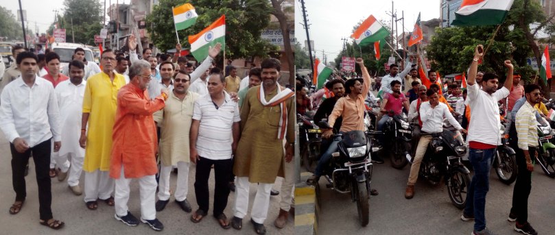 उरई। स्वतंत्रता दिवस 15 अगस्त की पूर्व संध्या पर आज भारतीय जनता पार्टी के सैकड़ों कार्यकर्ताओं ने तिरंगा यात्रा निकाल भारत माता के जयकारे लगाए।