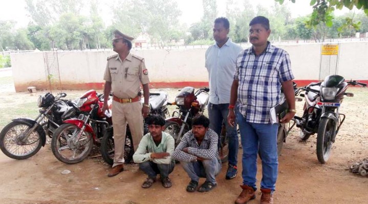 पुलिस अधीक्षक अमरेन्द्र प्रताप सिंह के निर्देशों के अनुपालन में चलाए जा रहे अभियान के तहत मुखबिर की सूचना पर स्वाट टीम प्रभारी आंनद कुमार सिंह कोतवाली उरई के उपनिरीक्षक मुकेश कुमार सिंह, राजबीर सिंह तथा हमराह सिपाहियों के साथ शब्तादी फैक्ट्री में बने खंडहर नुमा कमरे में छापाकर पूरन सिंह पुत्र मान सिंह तथा कुलदीप बाल्मीकि पुत्र मानसिंह निवासी मुहाना को गिरफ्तार कर मौके से 17 मोटर साइकिले बरामद कर ली। जबकि मौके से किशन पुत्र सुरेन्द्र मल्लाह निवासी कहटा थाना डकोर, रामराजा पुत्र बदनसिंह निवासी भरसूड़ा, रामजीवन पुत्र झुन्नीलाल और नरेन्द्र पुत्र भारत सिंह निवासी ऐंधा थाना कोटरा मौके से फरार हो गए। गिरफ्तार अभियुक्तों ने पूंछताछ में बताया कि उन्होंने जनपद जालौन तथा आसपास के जनपदों से मोटर साइकिलों को चोरी किया था। पुलिस ने आरोपियोंके खिलाफ मुकदमा दर्ज कर उन्हें जेल भेज दिया।