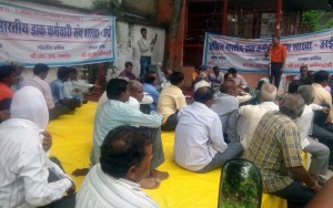उरई। अखिल भारतीय डाक कर्मचारी संघ के केन्द्रीय नेतृत्व के आवाहन पर अखिल भारतीय डाक कर्मचारी संघ उरई शाखा के द्वारा आज एक दिवसीय हड़ताल का आयोजन प्रधान डाकघर उरई में किया गया। हड़ताल के कार्यक्रम की अध्यक्षता का. आदित्य कुमार मिश्रा ने की।