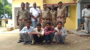 उरई। रामपुरा पुलिस ने गांवों से मंहगे मवेशियों को चुराने वाले गिरोह के चार बदमाश गिरफ्तार कर लिए हैं। उक्त बदमाशों ने ऊमरी न्याय पंचायत के पूर्व अध्यक्ष बब्बू भदौरिया के बाड़े से दो लाख रुपये की भैंसे चोरी कर ली थी। यही मामला उनके गले में अटक गया। बब्बू भदौरिया के राजनैतिक रसूख की वजह से इस मामले को लेकर जब रामपुरा के एसओ की शामत आ गई तो पुलिस चाहे तो क्या नही हो सकता की कहावत चरितार्थ करते हुए उसने आखिर इस चोरी का भेद खोल ही डाला। पकड़े गये चोरों में फिरोज निवासी धंतौली कोंच, रिजवान निवासी शाहगंज जालौन, अकरम निवासी जालौन और शाहिद निवासी सिहारी दाऊदपुर इस चोरी में दो और लोगों के नाम प्रकाश में आये हैं जिनमें महेंद्र भदौरिया धंतौली और अशफाक निवासी कालपी शामिल हैं पुलिस इनकी भी तलाश मे जुटी है। गौरतलब है कि 20-29 तारीख को इन लोगों ने रिजवान की लोडर यूपी 91 टी 7104 में बब्बू भदौरिया की भैंसे लाद ली थीं। भैसे लेकर फरार होते समय लोडर अकरम ने चलाया था। यह भैंसे उन्नाव में बेंच दी गई थीं। इन्होंने कुठौंद थाने के ग्राम तिरावली में 27 जुलाई की रात हुई भैसों की चोरी में अपना हाथ कबूला है। साथ ही 7 अगस्त की रात तीतरा खलीलपुर में आरोपियों ने ही शराब के ठेके में सेंध लगाई थी। पकड़े गये आरोपियो से 10700 रुपये बरामद किये गये हैं। पुलिस ने रिजवान और फीरोज से एक-एक 315 बोर तमंचा बरामद करने का दावा किया है। चारों को चालान के बाद जेल भेज दिया गया है।