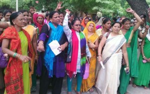 महिला आंगनबाड़ी कर्मचारी संघ की अध्यक्ष अनीश खातून, सुमन गुबरेले, मोहिनी, आराधना, रामकुमारी, अनुसुइया, मंजू, अरूणा, सरला देवी, सुमन, कुमकुम, मालती, राजेश्वरी आदि तमाम कार्यकत्रियां सहायिकाओं ने ग्रीन गैंग की अध्यक्षता शकुन्तला पटेल एवं भारतीय रिपब्लिकन पार्टी के मंडल अध्यक्ष मनोज कुमार अहिरवार के नेतृत्व में जिलाधिकारी कार्यालय परिसर में धरना प्रदर्शन किया। बाद में मुख्यमंत्री को संबोधित ज्ञापन नगर मजिस्टेªट नत्थू प्रसाद पांडेय को सौपा जिसमें मांग की गई है कि आंगनबाड़ी कार्यचारी को सरकारी कर्मचारी घोषित किया जाए तब तक कार्यकत्री को 18 हजार और सहायिका को नौ हजार मानदेय दिया जाए अवकाश प्राप्त तथा त्यागपत्र की दिशा में सरकारी विभागों कार्यरत महिलाओं के समान सुविधाएं दी जाए, चिकित्सा पाने इलाज हेतु भर्ती महिलाओं को पूरा मानदेय दिया जाए, मुख्य सेविका के रिक्त स्थानों की पूर्ति आंगनबाड़ी कार्यकत्रियों को वरिष्ठता के आधार पर पदोन्नति कर की जाए। कार्यकत्रियों और सहायिकाओं को प्राथमिक पाठशालाओं में समायोजन, छूट तथा कोटा निर्धारण में सुनिश्चितता बरती जाए। आंगनबाड़ी कर्मचारियों को अन्न विभागों में जैसे बीएलओ, जनगणना आदि में ड्यूटी न लगाई जाए जनपद में दस और पांच वर्ष से जमे सीडीपीओ एवं मुख्य सेविकाओंको स्थानांतरण किया जाए। आंगनबाड़ी कर्मचारियों की समस्या के निराकरण के लिए जिला कार्यक्रम अधिकारी एवं बाल विकास परियोजना अधिकारी के साथ बैठक सुनिश्चित की जाए।