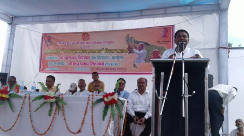 बहादुर सिंह इंटर कालेज में आयोजित किसान ऋण मोचन समारोह की अध्यक्षता क्षेत्रीय विधायक एम सी निरंजन ने की जबकि ए डी ओ पंचायत अंगद सिंह ने संचालन किया । कार्यक्रम शुरू से ही पूर्ति विभाग की दलाली करने वाले एक छुटभैया वकील के मंच पर विराजमान हो जाने से बदमजा हो गया । शालीनता में भाजपा के कार्यकर्ता उन्हें मंच से धक्के मार कर नीचे भले ही न उतार सके हों लेकिन उन्हे खरी खरी सुनाने में कोई संकोच नहीं किया गया । मनोज बादल ने उन्हे लक्ष्य कर कहा कि जो अनधिकृत लोग मंच पर बैठे हों वे खुद ही शर्म खा कर नीचे उतार आयें तो बेहतर होगा लेकिन फिर भी श्रीमान बेशर्म टस से मस नहीं हुए ।