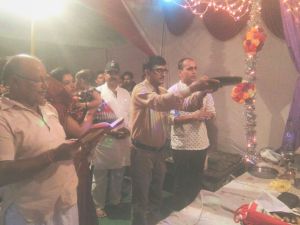 उरई। चौरसी मोड़ पर डाॅक्टर अखंड प्रताप सिंह ने मोहल्लावासियों के सहयोग से नवदुर्गा झांकी का भव्य आयोजन किया है जिससे पूरे इलाके में भक्ति रस की गंगा बह उठी है। शुक्रवार को झांकी का शुभारंभ वरिष्ठ पत्रकार केपी सिंह और माध्यमिक शिक्षक संघ के वरिष्ठ नेता रामजी गुर्जर ने आरती के साथ किया। इस दौरान बड़ी संख्या में मोहल्ले के सभ्रांत नागरिक और महिलाएं व बच्चे शामिल थे। आरती के बाद प्रसाद वितरण किया गया। शिक्षक दीपक सेंगर ने बताया कि नवरात्र पूरा होने के बाद झांकी की पूरे तामझाम के साथ विदाई होगी। उन्होंने कहा कि सामाजिक पर्यावरण को शुद्ध रखने के लिए इस तरह के धार्मिक आयोजनों का विशेष महत्व है।