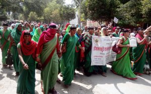 उल्लेखनीय हो कि पिछले दस दिनों से आंगनबाड़ी कार्यकत्रियों का आंदोलन कलेक्ट्रेट परिसर में चल रहा है। इस बीच वह प्रतिदिन प्रातः 10 से अपरान्ह दो बजे तक धरना प्रदर्शन कर मानदेय बढ़ाने सहित कई लंबित पड़ी मांगों को पूरा करने की गुहार प्रदेश सरकार के साथ ही केंद्र सरकार से लगा रही है। लेकिन अभी तक कार्यकत्रियों की मांगों को लेकर न तो कोई पहल प्रदेश सरकार की ओर से की गयी और ही केंद्र सरकार की ओर की गयी। यही कारण रहा कि आज आंदोलनरत आंगनबाड़ी कार्यकत्रियों में गुस्सा भी साफ तौर पर देखा गया। धरना सभा के साथ आंदोलन की शुरूआत होने के बाद अनेकों वक्ताओं ने कार्यकत्रियों को संबोधित किया तो वह आक्रोशित हो उठी और घर से लेकर आयी थालियों को बजाकर उन्होंने अपने गुस्से का इजहार भी किया। कार्यकत्रियों द्वारा आंदोलन की राह पकड़ने के साथ ही जनपद में संचालित आंगनबाड़ी केंद्रों का संचालन पूरी तरह से बंद हो चुका है। ऐसे में कुपोषित बच्चे ही नहीं गर्भवती महिलाओं को भी मिलने वाला पौष्टिक आहार से भी बंचित होना पड़ रहा है।