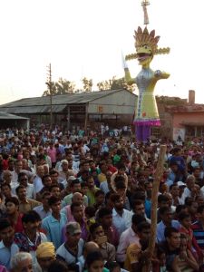 उरई । राम रावण युद्ध की रोमांचक लीला के बाद मंडी प्रांगण में जैसे ही रावण का पुतला दहन हुआ भीड़ ने जय श्रीराम के नारों से आसमान गुंजा दिया ।