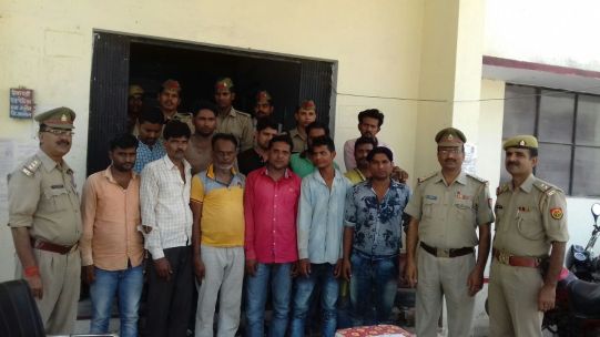 जिले में जुआ व सट्टा पर लगाम लगाने के लिए पुलिस अधीक्षक काफी तत्पर हैं। जुआ व सट्टा पर रोक के लिए उन्होंने अपने मातहतों को कड़े निर्देश दिए हैं। इसी क्रम में गुरूवार की शाम 7 बजे कोतवाली प्रभारी महाराज सिंह तोमर को सूचना मिली की ग्राम गायर में एक खेत मे बडे स्तर पर जुआ का संचालन हो रहा है। जिस पर कोतवाल प्रभारी ने एसओजी टीम, एसएसआई ब्रजनेश यादव व पुलिस बल के साथ बताए गए स्थान पर घेरा बंदी कर हारजीत की बाजी लगा रहे एक दर्जन जुआरियों को गिरफ्तार कर लिया तो वहीं पुलिस को देखकर करीब आधा दर्जन जुआरी भागने में सफल हुए। हिरासत में लिए गए जुआरियों को पुलिस कोतवाली ले आई। पुलिस ने उनके पास से 57 हजार रूपए नकद व मोटर साइकिल सहित कई मोबवाइल फोन बरामद किए पुलिस पूंछतांछ में बीरसिंह पुत्र हरदास गायर, अरविंद पुत्र गंगाराम गायर, रामसिमरन पुत्र श्यामाचरण हरकौती, फईम पुत्र कमरूद्दीन पटेल नगर उरई, ताहिर पुत्र नासिर उरई, सादाब पुत्र इकबाल अहमद श्याम नगर उरई, सद्दाम पुत्र शमशाद खां चुर्खी, आशुतोष पुत्र सीताशरण शत्रुघन पुत्र हरीशंकर पहाडपुरा, समीम पुत्र शहजाद गायर, कन्हैयालाल पुत्र पूरन सिंह गायर, विनय कुमार पुत्र शम्भूचरण गायर बताया। तो वहीं पुलिस ने पकडे हुए जुआरियों के खिलाफ सुसंगत धाराओं में मामला दर्जकर जुआडियों को न्यायालय में हाजिर किया।