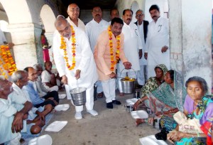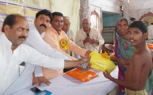 यहां बल्दाऊ धर्मशाला में बुधवार को एक सादे समारोह का आयोजन दरिद्र नारायण सेवा समिति के तत्वाधान में किया गया जिसमें संस्था द्वारा हिंदू 60 गरीब पुरुषों तथा 80 महिलाओं को दीपावली के अवसर पर नये कपड़ों का वितरण विधायक मूलचंद्र निरंजन, एमएलसी प्रतिनिधि आरपी निरंजन और सीओ रुक्मिणी वर्मा के हाथों कराया गया। वरिष्ठ साहित्यकार नरेन्द्र मित्र ने अपनी रचना नेक कामों के लिये वक्त निकाला करिये, एक दीपक की तरह कुछ तो उजाला करिये, भूखे प्यासों के लिये कुछ तो जोडिये घट में, एक मुट्टी ही सही रोज ही डाला करिये के माध्यम से आज के इस कार्यक्रम की सार्थकता और प्रासंगिकता बताई। विधायक मूलचंद्र निरंजन ने कहा कि वास्तव में दरिद्र नारायण सेवा समिति जैसी संस्थायें और उदारमना लोग गरीबों की चिंता करते हुये उनको न केवल नित्य भोजन की व्यवस्था करने में लगे हैं बल्कि पर्वों और त्योहारों पर नये कपड़ों का वितरण कर गरीबों को भी प्रसन्न होने का अवसर प्रदान करते हैं। आरपी निरंजन ने कहा कि दरिद्र नारायण सेवा समिति अब किसी परिचय की मोहताज नहीं रह गई है, यह देख कर आत्मिक सुख की अनुभूति होती है कि यह संस्था न सिर्फ गरीबों को रोज भोजन ही कराती है बल्कि ऐसे अपाहिजों जो चल फिर सकने में असमर्थ हैं, के घरों तक टिफिन के जरिये भोजन भेजने का भी प्रबंध करती है। तीज त्योहारों पर उन्हें नये वस्त्रादि प्रदान कर उन्हें भी पर्वों की खुशियां मनाने का मौका देती है। कार्यक्रम की अध्यक्षता पूर्व बारसंघ अध्यक्ष संतलाल अग्रवाल ने की और संचालन समिति के संयोजक कढोरेलाल यादव व राजेन्द्र दुवे ने किया। जिलाध्यक्ष झांसी प्रबुद्ध सभा महावीर भार्गव, प्रो. वीरेन्द्र सिंह, केके मिश्रा, देवेन्द्र कुमार द्विवेदी, श्रीकांत गुप्ता, हाजी सेठ नसरूल्ला, अभय मुखिया, महेन्द्र पटेल, हाजी मुहम्मद अहमद, गजराज सिंह सेंगर, प्रतिपाल सिंह गुर्जर, भाजपा अध्यक्ष प्रदीप गुप्ता, सुनील शर्मा, राजेशचंद्र गोस्वामी, धर्मादा के पूर्व अध्यक्ष केशव बबेले, हरिश्चंद्र तिवारी, अनिल वर्मा, ब्रजमोहन वर्मा, रज्जाक अंसारी, रज्जाक कुरैशी आदि मौजूद रहे।
