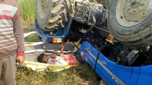 उरई,21 नवम्बर हि.स.)। पाइप लाद जा रहा ट्रैक्टर अनिंयंत्रित हो कर ट्राली समेत गहरी खंती में गिर गया । हादसे के बाद ट्रैक्टर के फँसे ड्राइवर को बाहर निकालने के लिए क्रेन बुलानी पड़ी ।