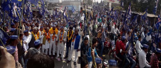सबसे पहले बहुजन समाज पार्टी क¢ प्रत्याशी रईस खान का जुलूस निकला, जिसमें सैकड़¨ं ल¨ग नीले झंड¢ लेकर चल रह¢ थ्¨ त¨ वहीं, बसपा क¢ प्रमुख दिग्गज आगे, आगे चलकर ल¨ग¨ं का अभिवादन कर रह¢ थ्¨। नेताअ¨ं क¢ अलावा बड़ी संख्या में महिलाअ¨ें की म©जूदगी रही। हजार¨ं की संख्या में ल¨ग बसपा प्रत्याशी क¨ मत देने की अपील ल¨ग¨ं से कर रह¢ थ्¨। प्रत्याशी क¢ जुलूस में भी गजब का ज¨श देखा गया। वहीं, बसपा का भी जूलूस शहर क¢ मुख्य मागर्¨ं से निकला। सबसे पहले बहुजन समाज पार्टी क¢ प्रत्याशी रईस खान का जुलूस निकला, जिसमें सैकड़¨ं ल¨ग नीले झंड¢ लेकर चल रह¢ थ्¨ त¨ वहीं, बसपा क¢ प्रमुख दिग्गज आगे, आगे चलकर ल¨ग¨ं का अभिवादन कर रह¢ थ्¨। जुलूस में पूर्व सांसद घनश्याम अनुरागी, पूर्व मंत्री अकबर अली, रामशरण जाटव, ब्रजेश जाटव जोन कोआर्डीनेटर, मूलशरण कुशवाहा, दुलारे कुशवाहा, अनुभव चतुर्वेदी, विनय सोनी, गिरीश अवस्थी, नीरज पाठक, मो. तारिफ रहमानी, उदयवीर दोहरे, प्रलुव्य निरंजन, संतराम कुशवाहा, माताप्रसाद प्रजापति, छुन्ना पाल, बालादीन कुशवाहा, बबलू च©धरी, सतेंद्र वर्मा, नदीम खां, संदीप विश्न¨ई, बंटू पाल, जीतू पाल, संतराम वर्मा, चंद्रप्रकाश बाजपेई, शशिकांत पाल, सुरंद्र कुमार मिश्रा, धीरु बाजपेई, अजय तिवारी, रामप्रकाश कुशवाहा, पप्पू पेंर, बंटू पाल, विजय श्रीवास, मह¢श कुशवाहा, राजेंद्र कुशवाहा, क¢शव पाल आदि म©जूद रह¢।