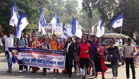 उरई। बुंदेलखंड दलित अधिकार मंच और उसके साथी संगठनों द्वारा रविवार को दलित के मुद्दे पर सम्मान मार्च निकाला गया । बाद में प्रदर्शनकारियों ने कलेक्ट्रेट परिसर में पहुँच कर न्याय सभा की।