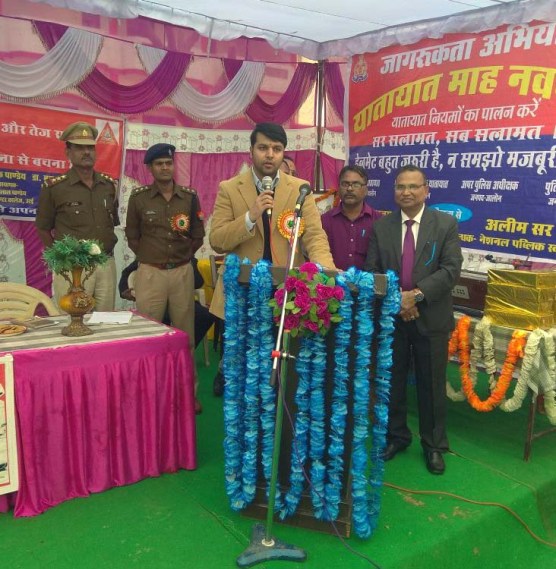 यातायात माह नवंबर का समापन अवसर पर मुख्य अतिथि डा. मन्नान अख्तर व एसपी एपी सिंह ने कहा कि टै्रफिक नियमों का पालन करें, जिससे दुर्घटनाएं नहीं होगी। एएसपी सुरंेद्र नाथ तिवारी ने कहा कि यातायात विभाग नियमों के बारे में जानकारी देने के लिए समय समय पर कार्यक्रम का आयोजन करता है। सीओ संतोष कुमार, टीएसआई शिव प्रताप, एआरटीओ सर्वेश कुमार, ईओ रविंद्र कुमार, कार्यक्रम को सफल बनाने में युद्धवीर कंथरिया, ममता स्वर्णकार, दीपक पांडे, शशि सिंह, अंजू पांडे, विनोद सैनी, संतोष प्रजापति आदि का योगदान रहा। इस अवसर पर बीकेडी एल्ड्रिच पब्लिक के प्रबंधक इं अजय इटौरिया ने भी बच्चों से यातायात नियमों का पालन करने पर जोर दिया। उन्होने कहा कि विद्यालय की ओर से हर बुधवार को हेलमेट डे मनाया जाएगा। उन्होंने कहा कि भारत विकास परिषद की ओर से 1310 ग्रीन कार्ड अब तक वितरित किए गए हैं। दस हजार ग्रीन कार्ड का लक्ष्य है। एसआर पब्लिक स्कूल के बच्चों द्वारा नुक्कड़ नाटक का आयोजन किया गया, जिसके जरि ए भी यातायात संबधी जानकारी दी गई। डीएम डा. मन्नान अख्तर व एसपी एपी सिंह ने एसआर पब्लिक स्कूल के छात्र, छात्राओं को पुरस्कार देकर सम्मानित किया गया और हौंसला अफजाई की गई। अशोक कुमार राठौर के अलावा कोतवाल देवेंद्र द्विवेदी आदि मौजूद रहे। वहीं, दूसरी तरफ कोंच मे ंभी जागरूकता कार्यक्रम का आयोजन किया गया। इसमें बताया गया कि बिना लाइसेंस के बाहन न चलाये,तेज गति से बाहन न चलाये,बिना हेल्मेटध्बिना शीट बेल्ट लगाये बाहन न चलाए शराब पीकर बाहन न चलाए, यातायात के नियमों का उल्लंघन न करें। कोई दुर्घटना होने पर 108,102,पर तत्काल सूचना दें। सीओ ने कहा कि नियमों को ध्यान में रखकर वाहन चलाएं, जिससे हादसे नहीं होंगे।