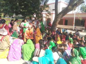 उरई। नियमितीकरण सहित विभिन्न मांगों को लेकर लंबे समय से आंदोलन के मोर्चे पर डटीं आंगनवाड़ी कार्यकत्रियों ने शुक्रवार को कलेक्ट्रेट में मुख्यमंत्री का ध्यानाकर्षित कराने के लिए ऐसा स्वांग रचाया कि लोगों की भीड़ जमा हो गई।