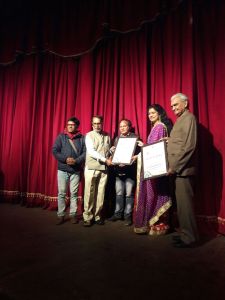 नाटक के मंचन से पहले कला संस्कृति के क्षेत्र में महत्वपूर्ण योगदान के लिए डा. अनिल रस्तोगी व डा. अनीता सहगल को लाइफ टाइम एचीवमेंट एवार्ड से सम्मानित भी किया गया।