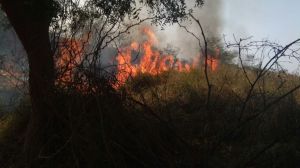 उरई। रामपुरा थाना क्षेत्र में पचनद के जंगल में शनिवार को दावानल भड़क उठा। इसमें दुर्लभ शीशम के सैकड़ों पेड़ आग की भेंट चढ़ गये। दमकल की गाड़ियां मौके पर पहुंच चुकी हैं लेकिन जंगल के अंदर प्रवेश का रास्ता न होने से आग बुझाने का कार्य बाधित हो रहा है। अभी भी कई जगह लपटें उठती दिखाई दे रही हैं।