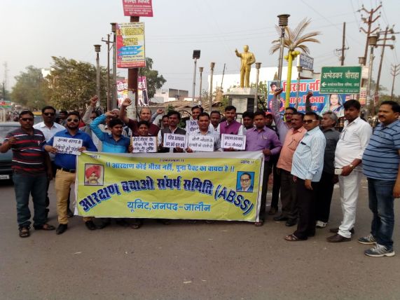 उरई। आरक्षण बचाओ संघर्ष समिति एवं आॅल आरक्षित टीचर्स एमलाइज द्वारा उन्नाव में अनुसूचित श्रीवास समाज की युवती को दिनदहाड़े जिंदा जलाने एवं इलाहाबाद में अनुसूचित पासी समाज दिलीप सरोज की सवर्ण दबंगों द्वारा निर्मम हत्या करने के विरोध में गांधी प्रतिमा के सामने तहसील गेट पर धरना दिया एवं डा. अंबेडकर चैराहा तक विरोध मार्च निकाला कर विरोध प्रदर्शन किया।