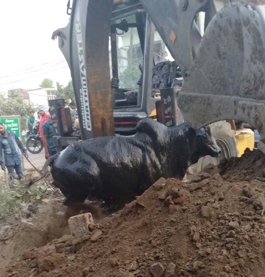 जिंदगी और मौत से जूझ रहे सांड को सुरक्षित निकाला गौसेवकों ने