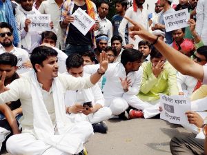 उरई। बुंदेलखंड विश्वविद्यालय के परीक्षा परिणाम से क्षुब्ध समाजवादी युवजन सभा के कार्यकर्ताओं ने सोमवार को अंबेडकर चैराहे पर जाम लगाकर भारी बबाल काटा। इस दौरान पुलिस अधिकारियों से झूमाझटकी हुई। नगर क्षेत्राधिकारी संतोष कुमार ने सूझबूझ का परिचय देते हुए संयम से काम लिया और अंततोगत्वा ज्ञापन लेकर उन्हें शांत करा दिया। उधर बुंदेलखंड दलित अधिकार मंच ने भी इस मामले में राज्यपाल के नाम संबोधित ज्ञापन जिलाधिकारी को सौंपा।