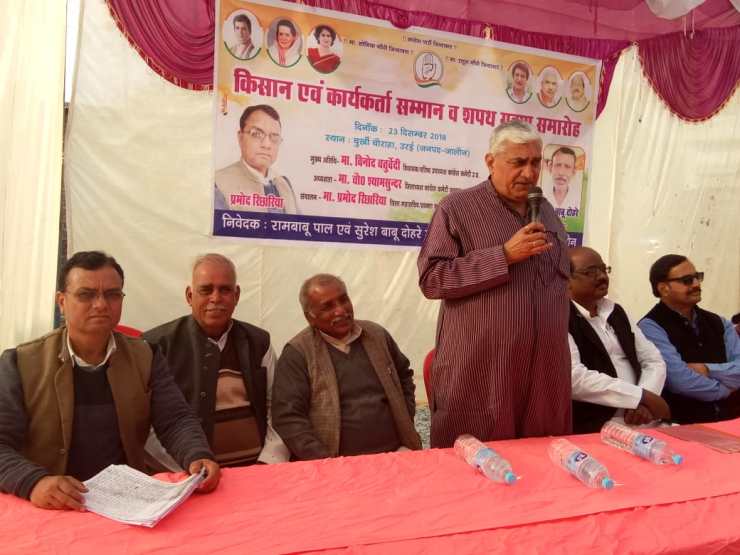 कार्यक्रम का आयोजन जिला कांग्रेस कमेटी के महासचिव रामबाबू पाल और सुरेश बाबू दोहरे ने किया था । मुख्य अतिथि विनोद चतुर्वेदी ने कहा कि आज सभी वर्ग केंद्र और प्रदेश सरकार की गलत नीतियों से कराह रहे हैं । पीड़ित जनता को ऐसे समय कांग्रेस में ही उम्मीद की किरण नजर आ रही है । जिला कांग्रेस अध्यक्ष चौधरी श्याम सुंदर ने कहा कि कांग्रेस फेंकू नहीं है । मध्यप्रदेश में कांग्रेस की सरकार बनते ही हमारे मुख्यमंत्री कमलनाथ ने चुनाव में किसानों से किए गए कर्ज माफी के वायदे को पूरा करने के लिए सबसे पहले इसी से संबंधित फायल पर हस्ताक्षर किए । सभा का संचालन प्रमोद रिछारिया ने किया ।