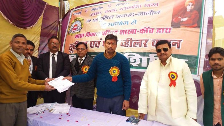 सोमवार को चंदकुआ चौराहे पर सामाजिक संस्था भारत विकास परिषद् के तत्वाधान में वाहन पंजीकरण शिविर की शुरुआत की गई। शिविर की अध्यक्षता संस्था अध्यक्ष विजय रावत ने की, मुख्य अतिथि एसडीएम गुलाब सिंह रहे जबकि बिशिष्टï अतिथि पूर्व बारसंघ अध्यक्ष विज्ञान विशारद सीरौठिया रहे। फीता काट कर शिविर का शुभारंभ किया गया। शिविर में दर्जनों दो पहिया और चार पहिया वाहनों के कागजात लेकर पंजीकरण किया गया। संस्था सचिव अमरेन्द्र द्विवेदी ने बताया कि शिविर 30 दिसंबर तक जारी रहेगा। इस दौरान ब्रजेन्द्र मयंक, प्रह्लाद सोनी, नरेन्द्र दुवे, काजी मुईनउद्दीन, प्रो. वीरेन्द्रसिंह, गजराजसिंह सेंगर, श्रीकांत गुप्ता, आनंद द्विवेदी, कढोरेलाल यादव, छोटू टाइगर सहित तमाम लोग मौजूद रहे।