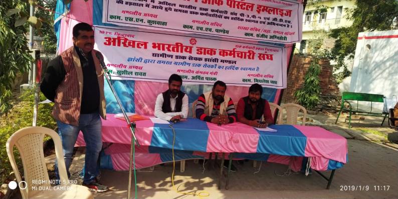 अखिल भारतीय डाक कर्मचारी संघ के मण्डलीय कोषाध्यक्ष अक्षय शुक्ला ने कहा कि सरकार को सभी ग्रामीण डाक सेवकों को रेगुलर सिविल सर्वेंट का दर्जा देना चाहिए,समान काम के लिए उन्हें भी समान वेतन देना चाहिए । आकस्मिक और अनुबन्ध कर्मचारियों को नियमित करना चाहिए । उन्होंने कहा कि अपनी इन्ही दस सूत्रीय मांगों को लेकर के डाक कर्मचारी हड़ताल पर हैं। अखिल भारतीय डाक कर्मचारी संघ ग्रामीण डाक सेवक के मण्डलीय सचिव मिथलेश व्यास ने कहा कि सरकार को 2 दिवसीय हड़ताल के द्वारा सचेत कर रहे है और अगर सरकार न मानी तो सभी कर्मचारी अनिश्चित कालीन हड़ताल पर भी जा सकते है। अर्पित पाठक,अशोक सोनी, शिवकुमार,रवीन्द्र,राजेश,कैलाश बाबू,रोहित पटेल,रामस्वरूप,पुष्पा सोनी, अनुराधा द्विवेदी,प्रियंका,विमला मिश्रा,आनंद रावत,भानू वर्मा,लक्ष्मी गुप्ता,हरगोबिंद, रोहित,स्वदेश अग्निहोत्री,साहिबे आलम,सौरभली,मधुसूदन,सुगन, दीपक,अशोक,विजय वर्मा,अश्विनी त्रिपाठी,भगवानदास नदीगांव, अंकित आदि डाक कर्मचारी उपस्थित रहे । कर्मचारियों ने सरकार विरोधी नारेबाजी भी की ।