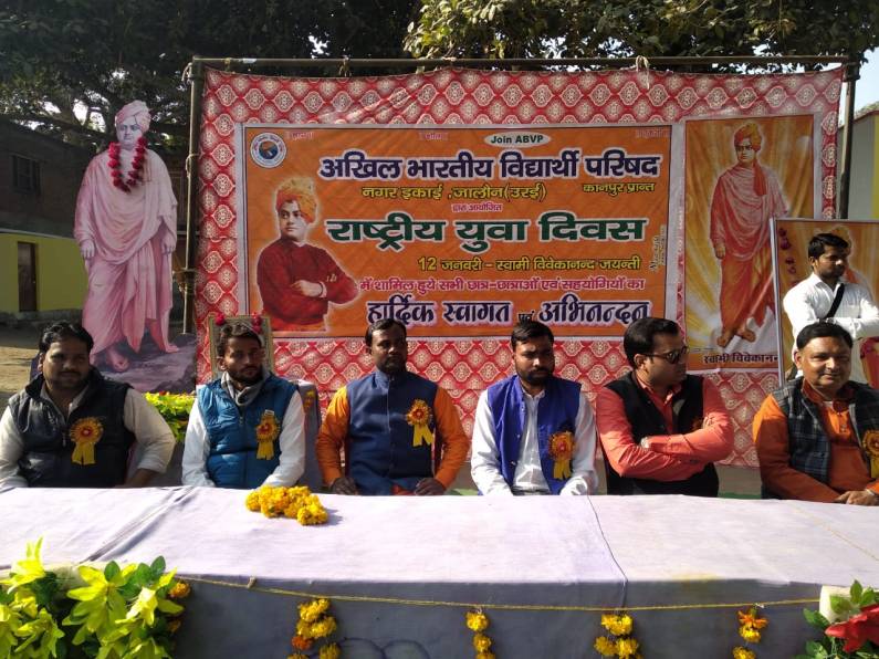 प्रांतीय संयोजक ने नगर के 5 स्कूलों के बच्चों के अलावा एक सैकड़ा से अधिक संघ प्रचारक ने विद्यार्थी परिषद के कार्यकर्ताओं को सम्बोधित करते हुए कहा कि विवेकानंद द्वारा जो देश के सम्मान को बनाये रखने के लिए किया गया उसके बारे में जितना भी गुणगान किया जाए कम है । विद्यार्थियों को उनके आदर्शों से सीख लेना चाहिए \ उनके द्वारा दिया गया एक एक वक्तव्य हमारे जीवन में अमूल्य है कार्यक्रम के पहले अखिल विद्यार्थी परिषद के कार्यकर्ताओं द्वारा युवा सन्देश यात्रा स्थानीय गल्ला मंडी परिसर से शुरू की गई जो कोतवाली रोड, देवनगर चौराहा से तहसील रोड होते हुए सब्जी मंडी से छोटी माता मंदिर के सामने पुराने अस्पताल पर समापन किया गया । इस संदेश यात्रा में महाराणा प्रताप साइंस एकेडमी, आर जे इंटर कॉलेज, सरस्वती ज्ञान मन्दिर के अलावा बालिका इंटर कॉलेज की छात्राओं ने भाग लिया । इस संदेश यात्रा को राष्ट्रीय स्वयंसेवक संघ के जिला प्रचारकर दीपक द्वारा भगवा ध्वज दिखाकर रवाना किया गया । इस मौके पर आयुष भदौरिया अखिल विद्यार्थी परिषद के नगर महामंत्री, नितिन मित्तल अध्यक्ष सेठ बीरेंद्र सिंह स्नाकोत्तर महाविद्यालय राजा सिंह गधेला जिला अध्यक्ष हिन्दू युवा वाहिनी के अलावा तमाम कार्यकर्ता मौजूद रहे।