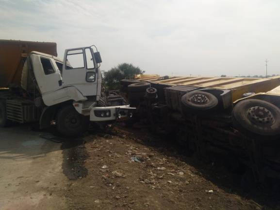 उरई । उरई – जालौन मार्ग पर गुरुवार को 2 ट्रक आमने सामने टकरा गए । तेज रफ़्तार के कारण यह दुर्घटना हुई जिससे बड़ी अनहोनी होते –होते बची ।
