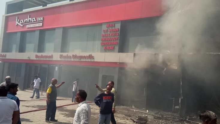 उरई। कालपी रोड पर राजकीय मेडिकल कालेज के सामने शुक्रवार को दोपहर में एक मशहूर निजी अस्पताल में आग लग जाने की अफवाह से खलबली मच गई । खबर पा कर पुलिस अधीक्षक स्वामी प्रसाद भारी फोर्स का साथ मौके पर पहुँचे । दरअसल आग कान्हा अस्पताल के रेस्टोरेंट में लगी थी । दमकल गाड़ियों की लगभग डेढ़ घंटे की मशक्कत के बाद आग पर काबू लिया गया है