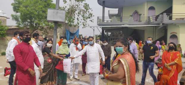 सदर विधायक गौरीशंकर वर्मा ने स्थानीय मिलन गेस्ट हाउस में नगर के डेढ़ सौ एेसे निर्धन व निराश्रित परिवारों को सूखी राशन सामग्री बांटी है जिनके घर लाक डाउन के चलते दो वक्त चूल्हा नहीं जल पा रहा है। नगर के डेढ़ सौ परिवारों को बांटी गई राशन सामग्री को पाकर लोगों के चेहरे खिल उठे। सदर विधायक ने कहा कि उनका मकसद है कि कोई भी परिवार भूखा न सोए। वह स्वयं विधानसभा क्षेत्र में जाकर लोगों का हालचाल ले रहे हैं जिसको आवश्यकता पड़ती है उसकी मदद कर देते हैं। इस मौके पर भाजपा जिलाध्यक्ष रामेंद्र सिंह सेंगर बनाजी, पालिकाध्यक्ष गिरीश कुमार गुप्ता, नगर अध्यक्ष अभय सिंह राजावत, सतेंद्र खत्री, पुनीत मित्तल, रामू गुप्ता, भाजपा महिला मोर्चा की नगर अध्यक्ष निशा माहेश्वरी आदि मौजूद रहे।