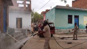 माधौगढ़। कोरोना वायरस का संक्रमण जिले में न फैले इसके लिए फायर ब्रिगेड की टीम शहर को सेनेटाइज करने के साथ साथ अब ग्रामीण क्षेत्रों में जाकर गांव की गलियों, मोहल्लों, बाजार, बैंक परिसर, मिलन केंद्र, प्राथमिक स्वास्थ्य केंद्र के अलावा थाने परिसर को भी सेनेटाइज करने में लगी हुई है। कोरोना वायरस जैसी घातक बीमारी को सोशल डिस्टेंसिंग और प्रापर सेनेटाइजिंग के जरिए ही इसके खतरे को कम किया जा सकता है। इसके लिए प्रशासन के निर्देश पर शहर के साथ साथ ग्रामीण क्षेत्रों में भी सेनेटाइजिंग का काम निरंतर जारी रहेगा।