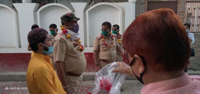 अभिनंदन से अभिभूत कोतवाल सिद्ध गोपाल वर्मा ने आभार प्रकट किया और कहा कि पुलिस जनता की सेवा के लिए दिन-रात समर्पित है।यदि किसी को खाद्य सामग्री या दवा के लिए हमारे सहयोग की ज़रूरत हो तो बेझिझक हमे पुकार सकती है।महिला थानाथ्यक्ष नीलेश कुमारी ने कहा कि जिस गर्मजोशी से आपने पुलिस बल का हौसला बढ़ाया है उसी जागरूकता के साथ आस पड़ोस की निगरानी करें और लाॅकडाउन को शत-प्रतिशत सफल बनायें। इस मौके पर जमाल छोटू,शमशेर क़ादरी,आमिर खान,इमाम फ़ज़ले अज़ीम रहमानी,मुहम्मद मुही आज़म,मुहम्मद वकील,सददाम कल्लू व अंग्रेज कमानी उपस्थित रहे।