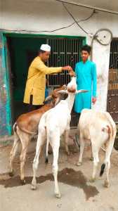 उरई। समूचे देश में कोरोना वायरस बीमारी को रोकने के लिए लाक डाउन जारी है। इस दौरान गरीब मजदूर तो भूख से परेशान है फिर भी उनकी मदद के लिए समाजसेवी व अन्य संस्थाएं आगे बढक़र राहत सामग्री भी उपलब्ध करवा रही हैं मगर इस महामारी के दौर में हजारों बेजुबान जानवर भूख की मार झेलते हुए सडक़ों पर भटक रहे हैं। इन्हें न तो पीने के लिए पानी ही नसीब हो रहा है और न ही पेट भरने के लिए चारा और भूसा भी नहीं मिल रहा है। भूख से तड़प रहे इन बेजुबान जानवरों की मदद के लिए कोई भी समाजसेवी व संस्था आगे बढ़ती हुई नहीं दिखाई दे रही है। शहर में विचरण कर रहे बेजुबान जानवरों की गंभीर समस्या को देखते हुए शहर के तिलक नगर (कबाड़ी मार्केट) निवासी समाजसेवी यूसुफ अंसारी के परिजन यामीन अंसारी और सकेब अंसारी, हाजी अय्यूब अंसारी, हाफिज शोएब अंसारी आवारा गायों और जानवरों के भूखे पेट को भरने के लिए हर रोज घर के दरवाजे पर गायों को भोजन पानी उपलब्ध करवा कर रमजान पाक माह में अपने कदम आगे बढ़ाते नजर आ रहे है जिनके इस नेक काम की सराहना सभी करते हुए नजर आ रहे हैं।