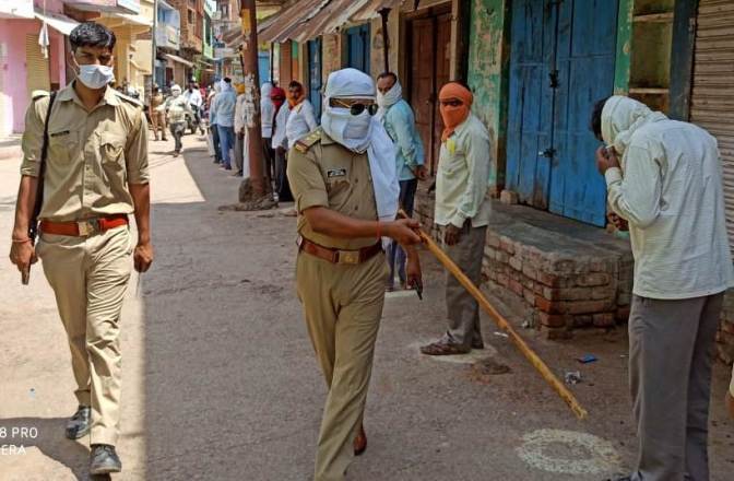 जालौन। बैंकों में रुपए निकालने के लिए लोगों की भीड़ उमड़ रही है। एेसे में पुलिस को सोशल डिस्टेंसिंग बनवाने के लिए पसीना बहाना पड़ रहा है।