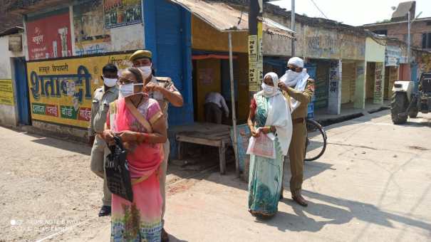 चौकी प्रभारी संजीव दीक्षित व कोतवाल सुनील सिंह ने बाजार में भ्रमण कर लोगों को मास्क करने के लिए प्रेरित किया। इस दौरान मास्क न पहनने वाले युवाओं को जहां दंडित किया गया। वहीं बुजुर्गों व महिलाओं को उन्होंने अपने हाथों से मास्क पहनाए। साथ ही उन्हें समझाया कि कोरोना के खिलाफ जंग को जीतने में उनकी भी अहम भूमिका है। बिना आवश्यकता के घर से बाहर ही न निकलें। यदि आवश्यक हो तो मास्क पहनकर ही घर से बाहर निकलें। उन्होंने कहा कि यदि आइंदा बिना मास्क के दिखते हैं तो कार्रवाई की जाएगी। उन्हें जो मास्क दिए गए हैं वह घर पर जाकर न रखें बल्कि उनका उपयोग करें।