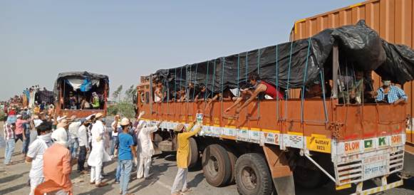 उरई। वैश्विक महामारी में लाकडाउन की वजह से प्रवासी मजदूरों का हाईवे से निकलना लगातार जारी है। कई दिनों से गर्मी,में सफर कर भूख प्यास से बेहाल मजबूर प्रवासियों का आलम यह है, कि भोजन पानी के एक-एक पैकेट के लिए दर्जनों हाथ ट्रकों से बाहर निकालते हैं।ऐसी गर्मी में प्यास व भूख कही इनके लिए काल न बन जाए।शनिवार को चिलचिलाती धूप में औरैया रोड डाइवर्ट होने की वजह से गोविन्दम के पहले पूर्व चैयरमैन विजय चौधरी, सबाब हुसैन और अब्दुल जलील आदि ने फिजिकल डिस्टेंसिंग का पालन करते हुए प्रवासी मजदूरों को पूड़ी सब्जी से भरे लंच पैकेट,खील दाने,चने, और चावल व पानी की बोतल दिए। पिछले चार दिन से प्रवासियों को लगातार भोजन दिया जा रहा है। उनके साथी प्रवासियों की प्यास बुझाने में लगे है, पानी की बोतल बांट रहे है।