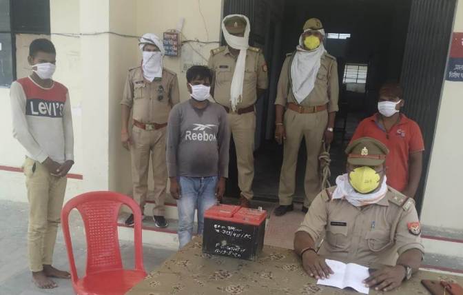 जालौन। लौना मार्ग पर स्थित बाइक शोरूम के बाहर खड़े लोडर की बैटरी को चुराने के आरोप में पुलिस ने तीन लोगों को पकड़ा है जिनके पास से पुलिस ने चोरी की गई बैटरी बरामद की है।