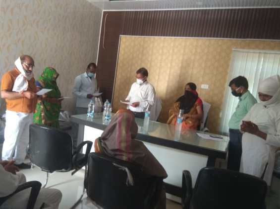 ऊमरी-उरई। नगर पंचायत में शासन द्वारा नामित सदस्यों को उप जिलाधिकारी माधौगढ़ सालिकराम ने सोशल डिस्टेसिंग का पालन करते हुए आयोजित कार्यक्रम में निष्ठा पूर्वक कार्य करने की शपथ ग्रहण करायी।