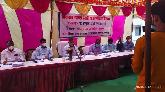 मुहम्मदाबाद। शुक्रवार को मंडलायुक्त सुभाष चंद्र शर्मा ने डकोर विकास खंड परिसर में कोरोना वायरस के चलते बाहर से आए प्रवासी मजदूरों को रोजगार दिलवाने के संबंध में बीडीओ व ग्राम सचिवों को कड़े निर्देश दिए। अधिक संख्या देखकर मंडलायुक्त ने बैठक से रोजगार सेवक व तकनीकी सहायक को बैठक से भगाया।