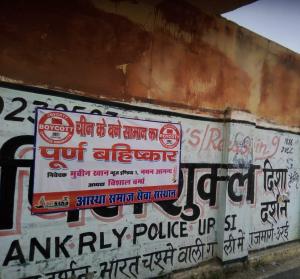 शहर के मुख्य चौराहे पर लगाई बायकाट चाइना की होर्डिंग