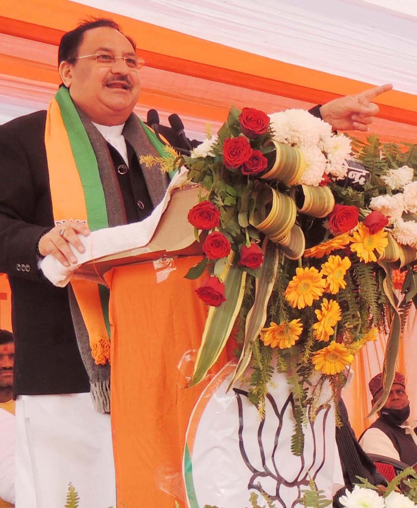 जेपी नड्डा शुक्रवार को स्थानीय राजकीय इंटर कालेज मैदान में भाजपा प्रत्याशी गौरी शंकर वर्मा के समर्थन में सभा को संबोधित कर रहे थे | इसके पूर्व सभा में कम उपस्थिति को लेकर जेपी नड्डा ने कहा कि कोरोना प्रोटोकाल के कारण उनकी पार्टी को यहां एस डीएम को कुर्सियां गिनवाकर यह आश्वस्त करना पढ़ा कि एक हजार से ज्यादा लोग उपस्थित नही होंगे ।