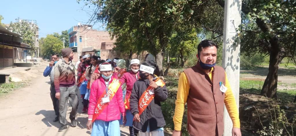 माधौगढ़-उरई | राष्ट्र उत्थान में साधक स्वीप कार्यक्रम के अंतर्गत शत- प्रतिशत मतदान के उद्देश्य को लेकर जिलाधिकारी जालौन प्रियंका निरंजन एवं जिला विद्यालय निरीक्षक भगवत पटेल के निर्देशन में माधौगढ़ विधानसभा के राजकीय इंटर कॉलेज बंगरा ने अपनी महती भूमिका पुनः स्पष्ट की। विद्यालय के प्रधानाचार्य व माधौगढ़ तहसील के नोडल प्रभारी जयदेव नगायच के नेतृत्व में विद्यालय के अध्यापकों एवं विद्यार्थियों ने टोली बनाकर गांव-गांव में मतदाताओं को जागरूक करने का अभियान चलाया। इस क्रम में बंगरा में विद्यार्थियों ने टोली बनाकर प्रत्येक मतदाता को मत के महत्व को समझाते हुए अनुरोध किया कि आगामी 20 फरवरी को अवश्य वोट डालना है। विद्यार्थियों ने समझाया कि मतदाता के मतदान की चूक पूरे प्रदेश व देश को प्रभावित करती है। इसलिए सोच समझकर बिना किसी प्रलोभन और भय के अपने मताधिकार का प्रयोग करें । प्रधानाचार्य जयदेव नगायच ने स्थानों स्थानों पर मतदाताओं को एकत्र कर लोकतंत्र के पर्व 20 फरवरी को मतदान कर अपनी भागीदारी सुनिश्चित करने की अपील की ।