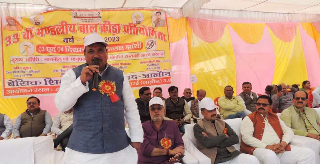 मुख्य अतिथि केन्द्रीय सूक्ष्म, लघु और मध्यम उद्यम राज्य मंत्री, भानु प्रताप सिंह वर्मा व जिलाधिकारी चाँदनी सिंह ने सरस्वती जी के चित्र पर मार्ल्यापण के बाद दीप प्रज्जवलन कर प्रतिभागी बच्चों की परेड की सलामी ली तथा खेल शपथ दिलायी | तदोपरान्त हरी झण्डी दिखाकर खेल प्रतियोगिता का शुभारम्भ किया । तीनों जनपदों की टोलियों द्वारा मुख्य अतिथि के समक्ष सांस्कृतिक कार्यक्रम भी प्रस्तुत किये गये | इस दो दिवसीय क्रीडा प्रतियोगिता में पहले दिन 50 मी0 बालक/बालिका दौड़, नाटक / लोकगीत / पी०टी० प्रतियोगिता का आयोजन किया गया। जिसमें जनपद ललितपुर से 180, झांसी से 180, जालौन से 170 बालक/बालिकाओं ने विभिन्न प्रतियोगिताओं में प्रतिभाग किया। सचिन कुमार, जिला बेसिक शिक्षा अधिकारी, जनपद जालौन द्वारा सभी अतिथियों को धन्यवाद ज्ञापित किया गया।